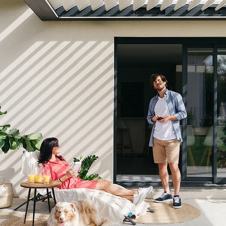 Een terras dat je het hele jaar door kunt gebruiken, ongeacht de weersomstandigheden? Met een lamellen overkapping van Somfy maak jij van jouw buitenruimte een verlengstuk van je woning.