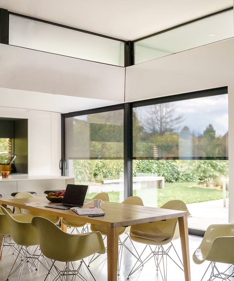 Je screens werken samen met een motor, sensoren en slimme bediening. Zo kunnen ze vanzelf zakken bij felle zon en weer openen wanneer het kan. Met de Somfy TaHoma switch kun je ook een 'Thermisch Comfort' scenario aanzetten waarmee je direct van dynamische zonwering profiteert.