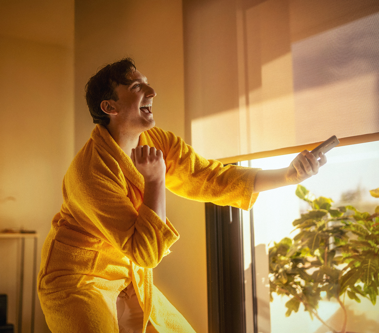 Met één tik in de app of met een stemcommando verander je je thuis in een rustige en comfortabele plek.