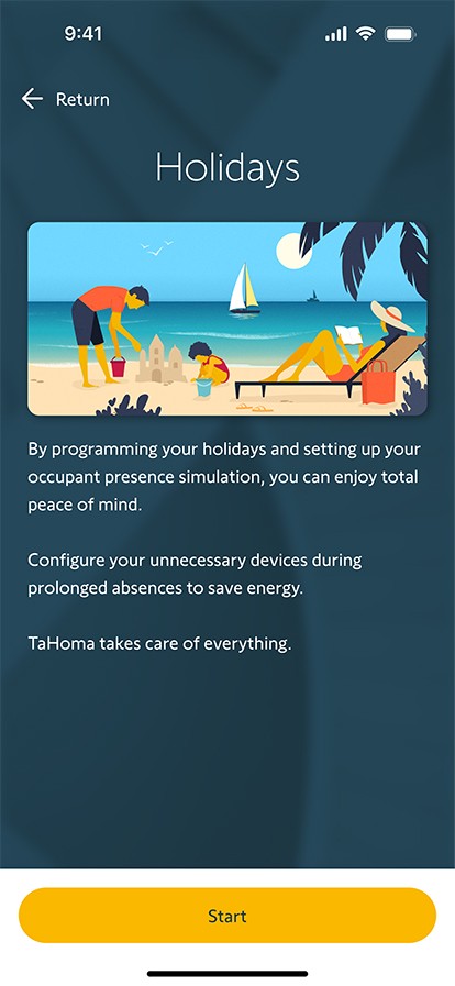 Geniet zorgeloos van je vakantie. In de TaHoma app programmeer je rolluiken, jaloezieën of verlichting om op vaste of willekeurige momenten te bewegen. Zo lijkt het alsof er iemand thuis is.